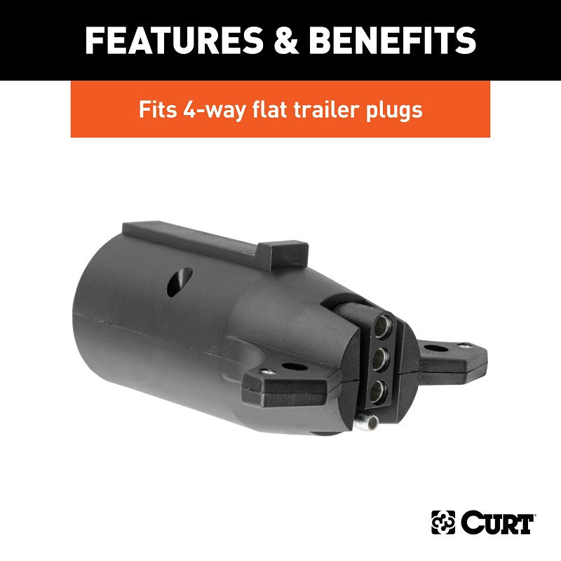 The Curt 57241 electrical adapter is designed to bridge the gap between mismatched trailer plugs and vehicle sockets. This essential device allows you to connect a seven-way RV blade vehicle socket to a four-way flat trailer plug, making it ideal for various towing needs. With its easy plug-in design and durable construction, this adapter is perfect for anyone looking to tow confidently without the hassle of complicated wiring.