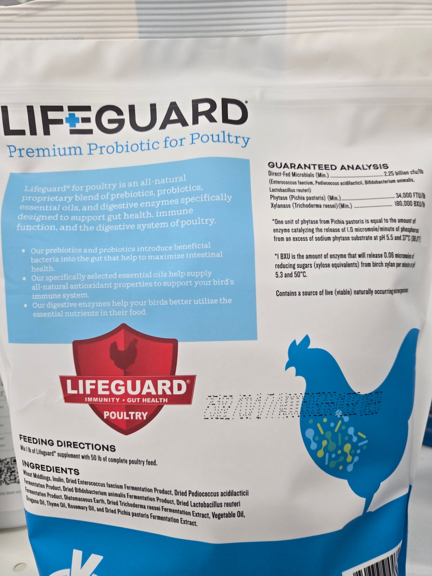 Lifeguard Probiotic is a specialized probiotic formulation designed for use in poultry. It supports gut health and helps maintain a balanced intestinal microflora, which is essential for optimal digestion and nutrient absorption. This product is ideal for poultry farmers looking to enhance the overall well-being of their flock.