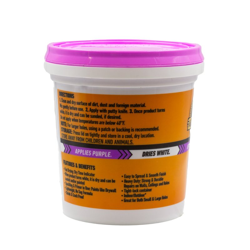 Gorilla 116568 high-performance wall repair spackling + primer is the go-to product for strong, durable repairs on walls, ceilings, and both small and large holes. Its lightweight formula is easy to spread and control, ensuring that it doesn't sag, shrink, or crack. Ideal for anyone looking to achieve a professional-looking finish without the need for sanding.