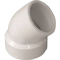The Canplas 1-1/2" PVC Pipe Elbow is designed for seamless plumbing solutions, featuring a hub x spigot connection and a 45° angle for efficient fluid flow. Crafted from durable Schedule 40 PVC, this elbow fitting ensures long-lasting performance in both residential and commercial applications. Its sleek white finish not only provides a clean aesthetic but also resists corrosion and UV damage, making it ideal for various plumbing installations.