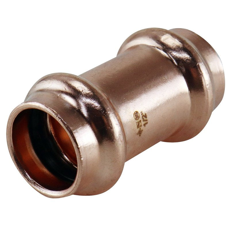 The Apollo XPRC12NS coupling without stop is designed for reliable press fit connections in plumbing applications. With a nominal size of 1/2 inch and a pressure rating of 300 psi, this copper coupling is ideal for high-temperature environments, operating up to 250 degrees Fahrenheit. It is perfect for use in both residential and commercial plumbing systems.